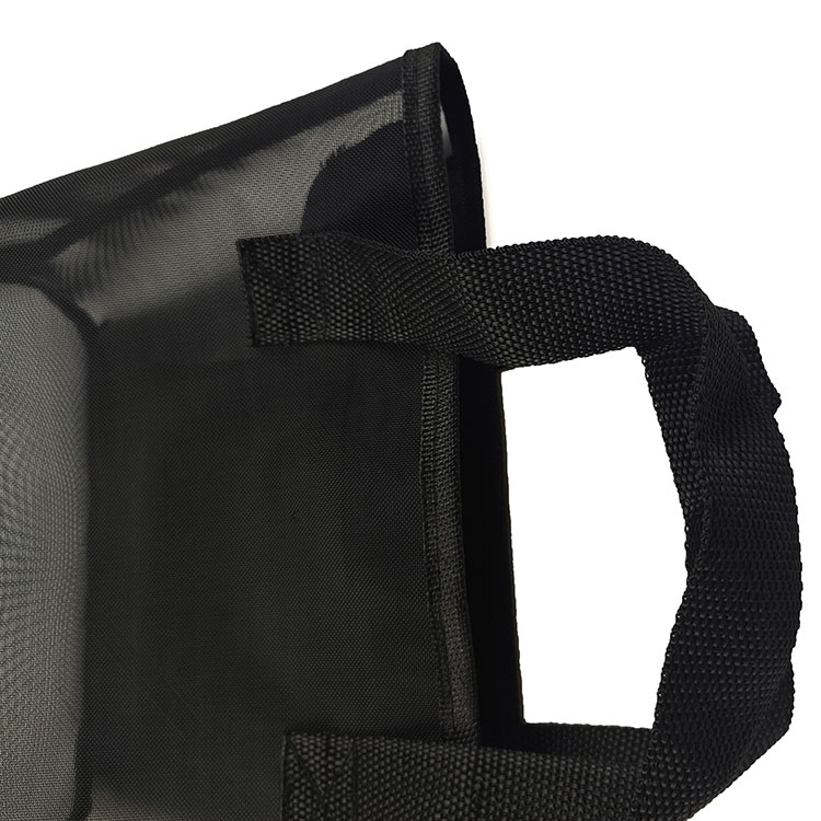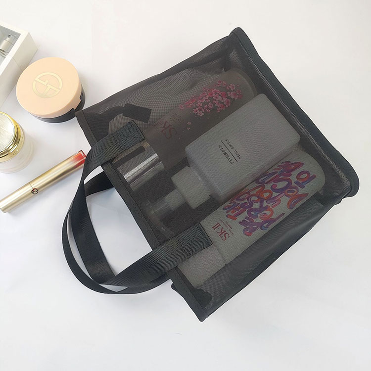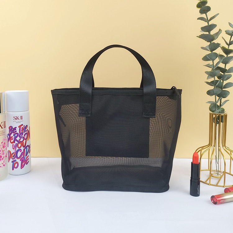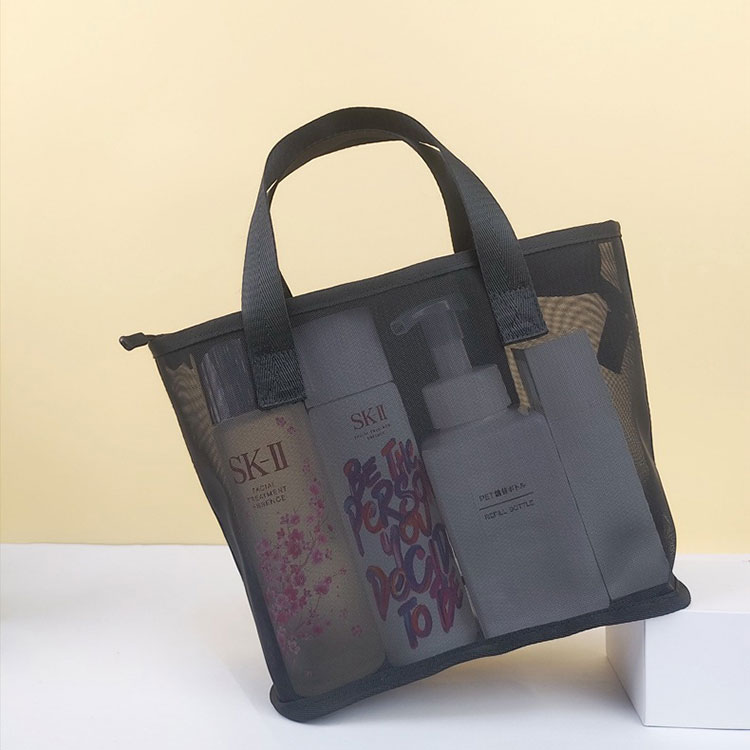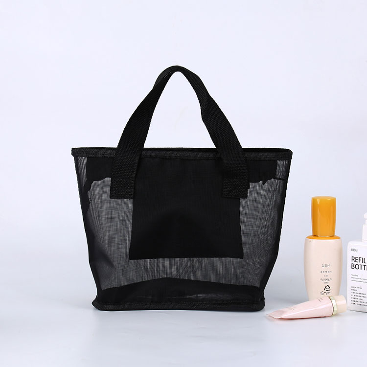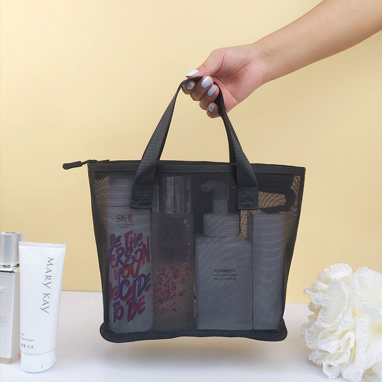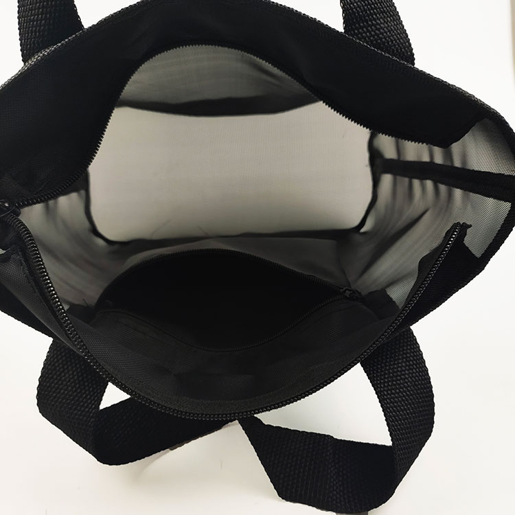 Черната мрежеста чанта с дръжка е изработена от здрава, лека мрежеста материя с гладък, здрав цип, който е издръжлив и съхнещ бързо. Той спечели голямо благоразположение от клиентите в страната и чужбина.